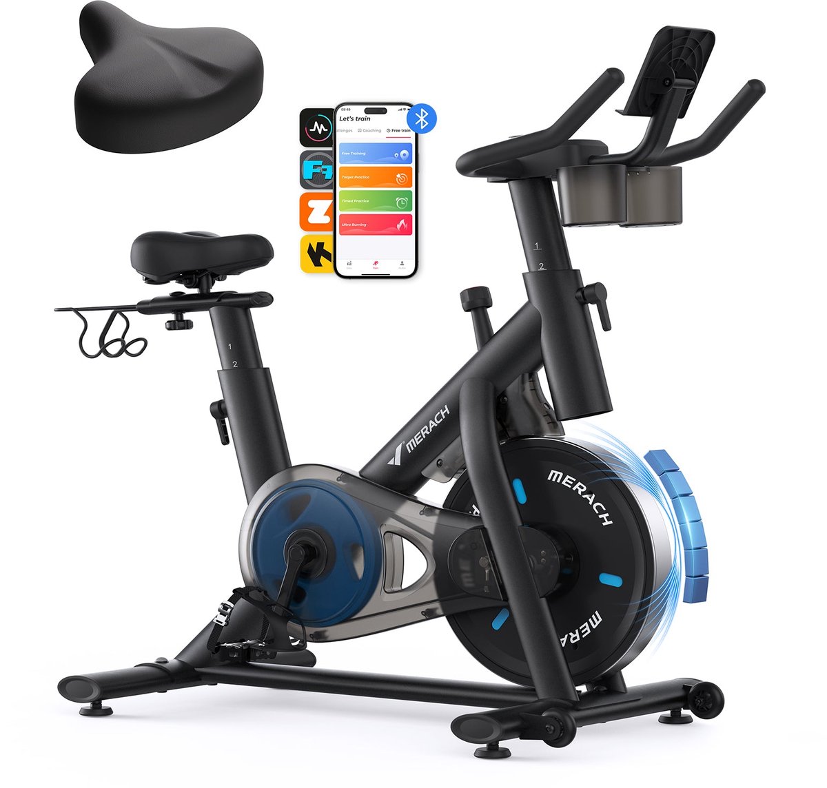 De MERACH gebruikt een magnetisch weerstandsysteem dat je handmatig regelt met een draaiknop, met een bereik van 0 tot 100 voor vloeiende progressie. Het vliegwiel weegt zes kilogram en samen met het magnetische systeem zorgt dit voor een stabiele, consistente training. Je kunt de weerstand tijdens het fietsen eenvoudig en direct aanpassen voor interval- of duurtraining.